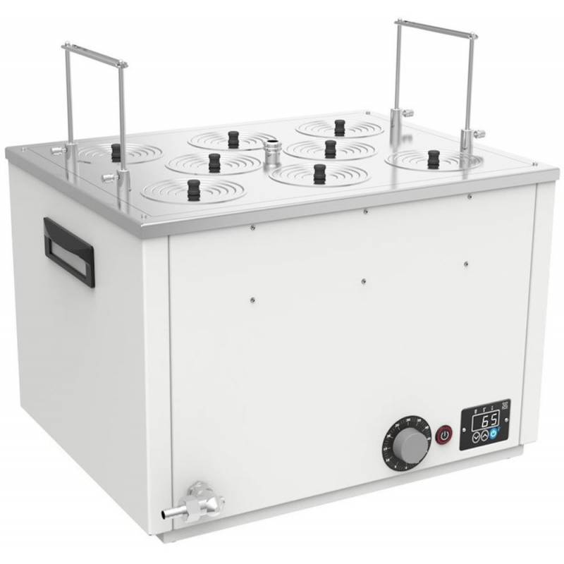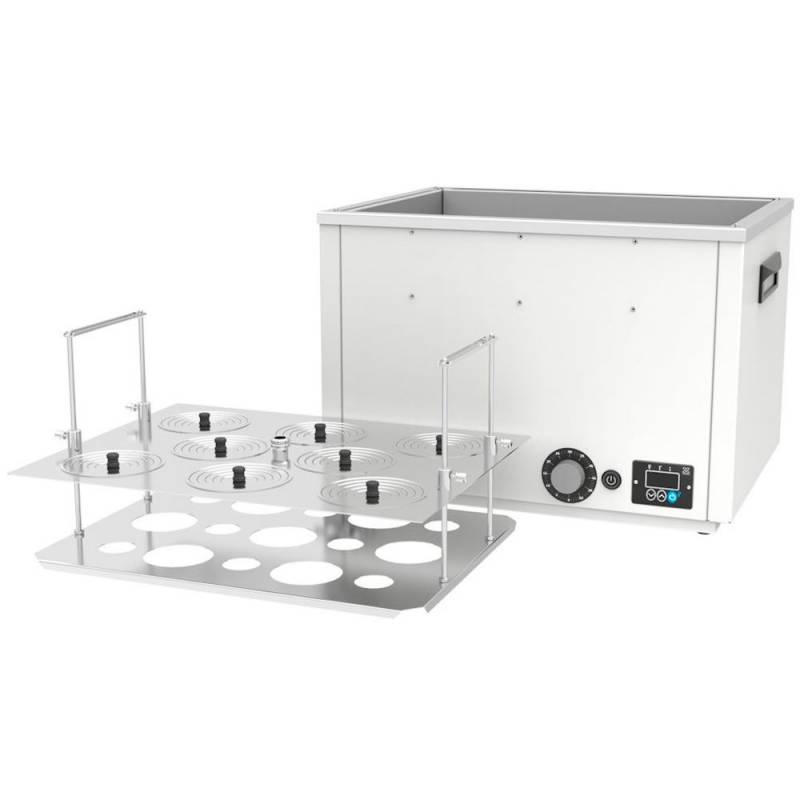 Универсальная баня ЛБ84 оснащена легко извлекаемой корзиной с подвижным дном для размещения лабораторной посуды различного размера и стальными концентрическими кольцами для ее уплотнения.