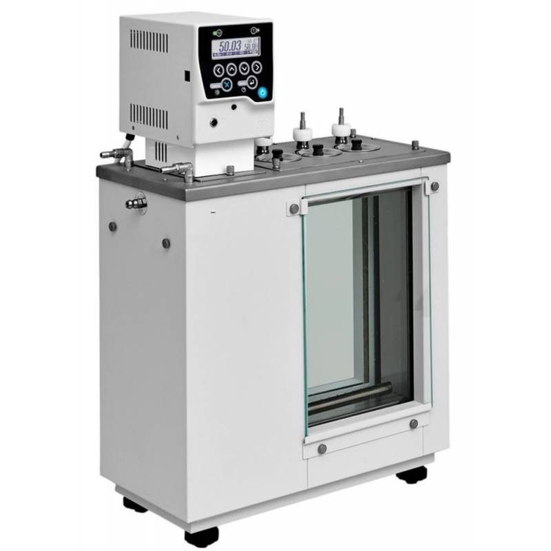 Переливной жидкостный термостат с прозрачными стенками ВИС‑Т‑10‑3 предназначен для поддержания температуры при определении кинематической вязкости нефтепродуктов и других жидкостей с помощью стеклянных вискозиметров в соответствии с ГОСТ 33, ГОСТ Р 53708, ГОСТ 33389, ASTM D445, IP 71, ISO 3104 и DIN 51366.