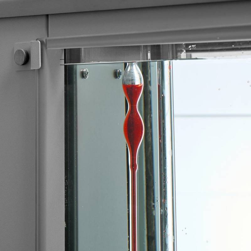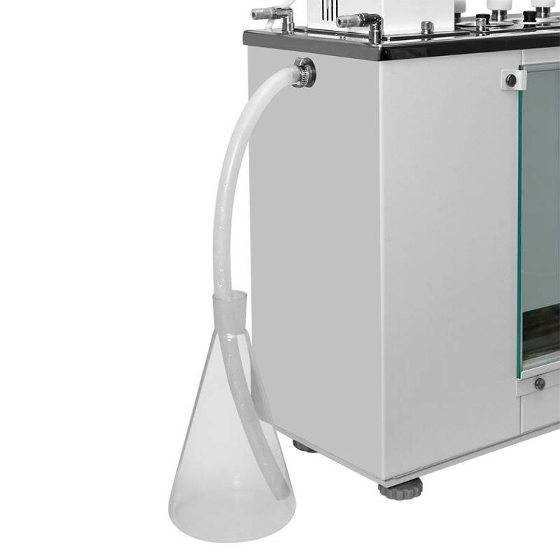 - Постоянный уровень теплоносителя не только в рабочем объеме, но и в промежутке между окнами внешней и внутренней ванн обеспечивается наличием буферной ванны. Такая конструкция исключает необходимость частого добавления теплоносителя. В стандартной 2-х ванной конструкции при испарении теплоносителя его уровень между окнами внешней и внутренней ванн быстро снижается, что мешает наблюдению за вискозиметрами в процессе измерения.